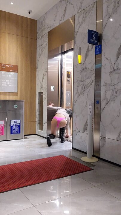 Caught and cum!! Big tits Exhibitionist Gina half naked in public